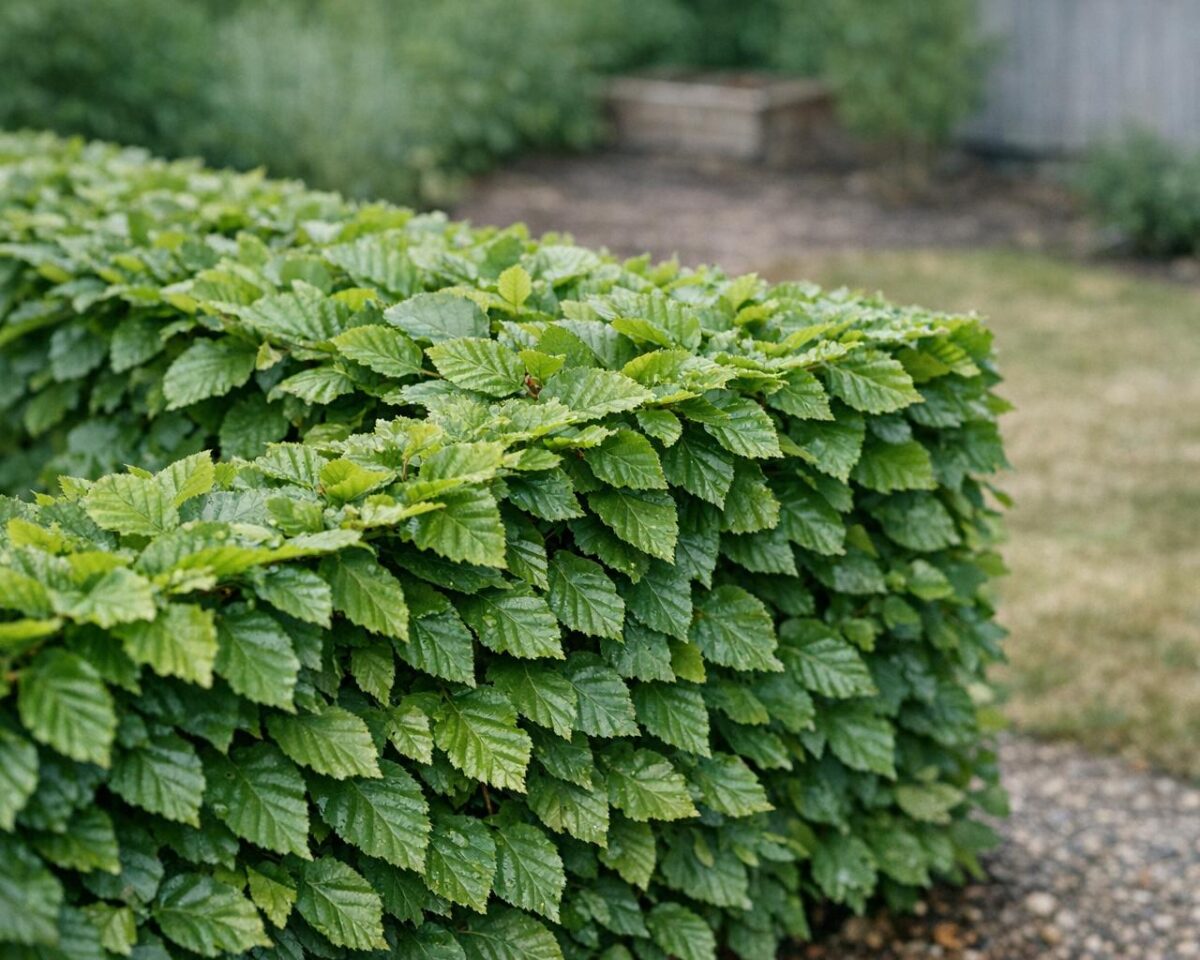 Ta bort topparna på skotten för att uppmuntra tillväxt av sidogrenar. Håll häcken i en trapetsform – bredare vid basen och smalare upptill – så att solljus når hela vägen ner till de nedersta bladen. Om häcken fortfarande känns gles under andra året, upprepa samma beskärningsprocess. Använd alltid vassa verktyg för att få rena snitt som läker snabbt och minskar risken för skador.