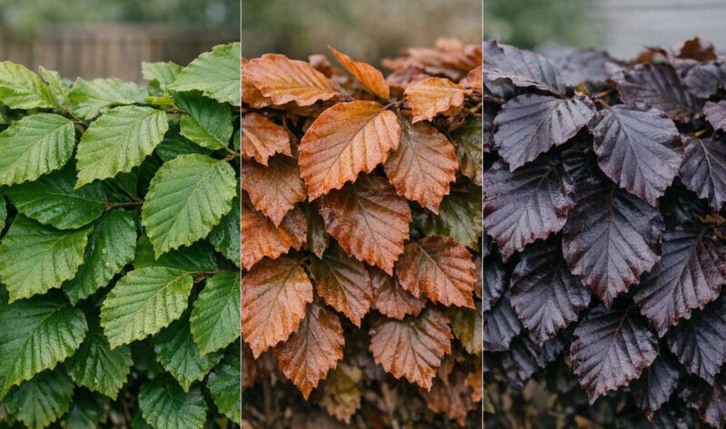 Jämför tillväxt, färg och skötsel för grön, koppar- och purpurbok. Tips för plantering, vattning och beskärning för en tät och frisk häck.